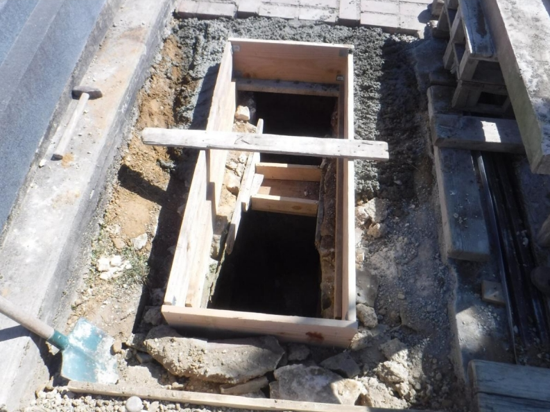 Po demontażu naziemnej zabudowy nagrobka zaklinowano ściany komory grzebalnej. Poziom zabudowy podniesiono o 20 centymetrów i utworzono rodzaj betonowej opaski, która jest analogiczna do rozwiązania zastosowanego w nagrobku wybudowanym po lewej stronie. Ustawione także elementy klamrowania z zastosowaniem stali nierdzewnej. Powierzchnie wapienia i marmuru z Carrary oczyszczono fizykochemicznie. Rozległe ubytki w wapieniu uzupełniono we flekach wapiennych. Mniejsze ubytki wypełniono masą opartą na spoiwie mineralnym i dobranych indywidualnie wypełniaczach. Zadbano o to, by kolory zdobień były tożsame z oryginalnymi. Odtworzono także wypełnienia spoin pomiędzy blokami kamiennymi.